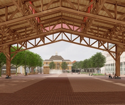 De Markthal is een open hout constructie zonder gevels, en wordt gesitueerd aan de zijde van het Marktplein.Er komt een aanpassing aan het toegangsgebouw naar de openbare parkeergarage. Het gehele marktplein ondergaat een metamorfose. Met de Markthal, fonteinen, en boombankjes om heerlijk te kunnen zitten.