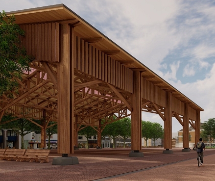 De Markthal is een open hout constructie zonder gevels, en wordt gesitueerd aan de zijde van het Marktplein.Er komt een aanpassing aan het toegangsgebouw naar de openbare parkeergarage. Het gehele marktplein ondergaat een metamorfose. Met de Markthal, fonteinen, en boombankjes om heerlijk te kunnen zitten.